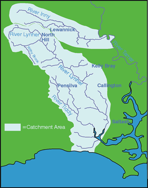 Valley and Darleyford streams and Kelly Brook. 75% of the Lynher