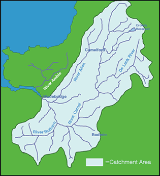 Rising at 280m on Hendraburnick Down on Bodmin Moor, the River Camel drains a 413km2 area between Bodmin Moor and Padstow and encompasses a diverse range of farming landscapes. With an average gradient of 7m/km, it flows for approximately 40km before joining the sea near Padstow.