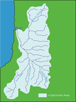 The Strat and Neet rivers are not long, measuring 12.7 and 10.5 miles respectively, and are characterised by very quick response times to rainfall events. As a consequence, flooding can be a problem with extensive flood defence schemes being in place at Bude and Helebridge.