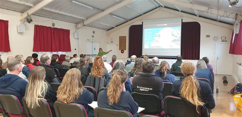 Fifty-seven partners from 38 organisations met in-person in Wembury and online to hear talks showcasing the fantastic work being carried out around the catchment. We heard updates from Rob Price (EA Catchment Coordinator) and Giles Rickard (TCP Chair). Our keynote speaker was from Yealm Estuary to Moor (YEM) on how wildlife habitats are being restored and reconnected in the Yealm wildlife corridor in this community-led project, followed by presentations on the Wembury Stream Resilience project (Fluvio and National Trust), the Yellow Fish Scheme (Plymouth City Council and TECF), Yealm Intertidal Habitat Improvements (South Devon National Landscape), and water quality citizen scientists the Yealm Dippers, comprising 50 trained volunteers who monitor 29 sites in the Yealm in addition to Riverfly.